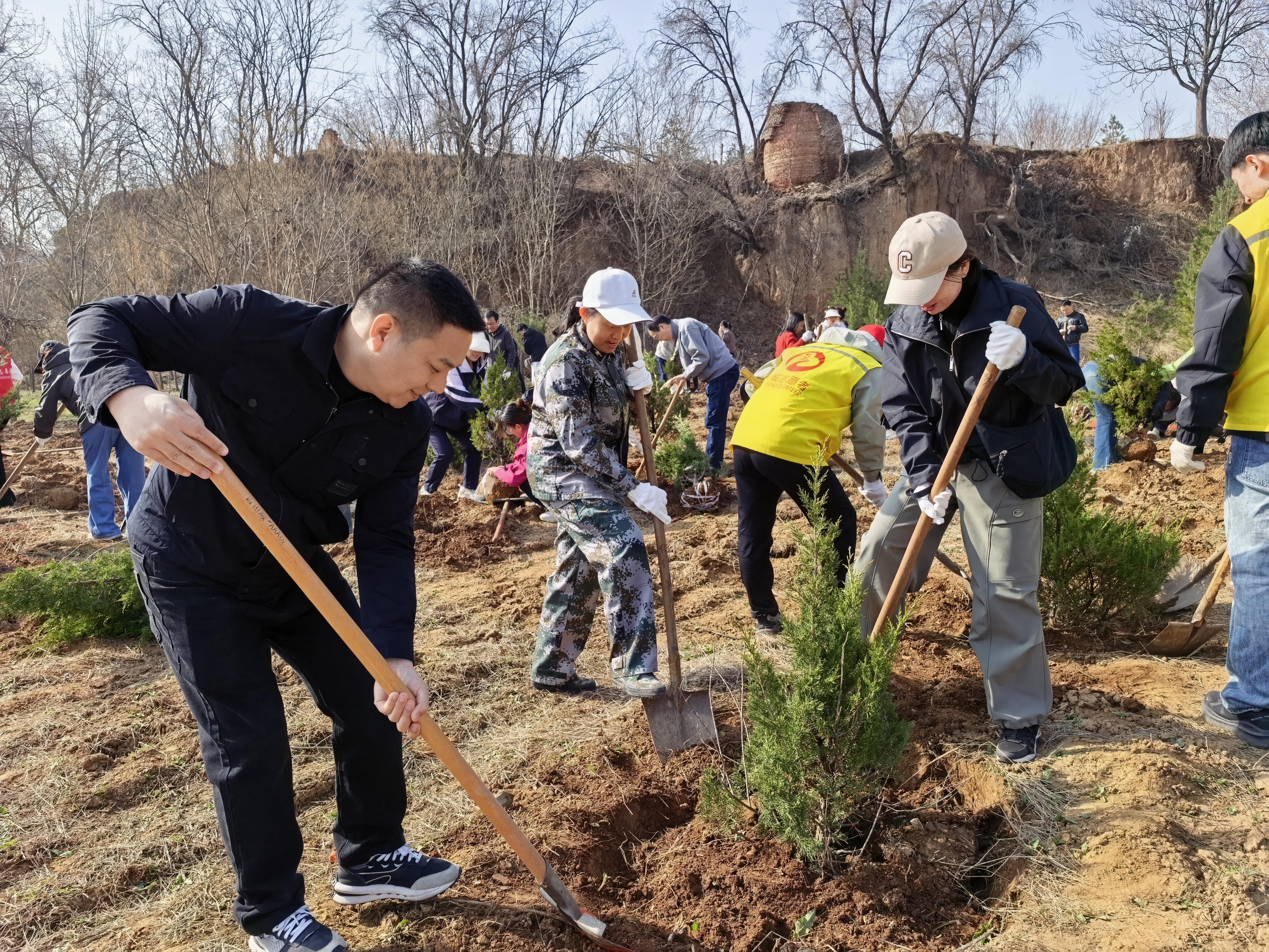 活动当天,干部职工们早早抵达植树现场,在技术人员的专业指导下,分工明确、协作默契,有条不紊地开展挥锹铲土、扶苗填坑、踩实浇水等各项工作,高效完成了植树任务,一排排新栽的油松、侧柏树苗整齐挺立,为山坡增添了一抹鲜活新绿。大家纷纷表示,这次活动不仅为生态文明建设出了一份力,也在协作中进一步凝聚了团队力量、强化了责任担当。